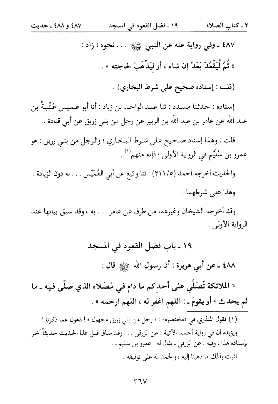 487- وفي رواية عنه عن النبي صَلَّى اللَّهُ عَلَيْهِ وَسَلَّمَ ... نحوه؛ زاد: