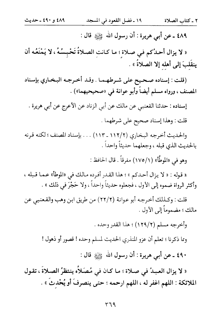 إسناده: حدثنا القعنبي عن مالك عن أبي الزناد عن الأعرج عن أبي هريرة.
