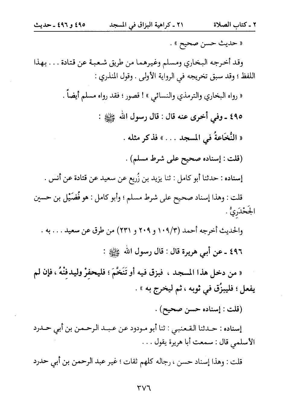 " رواه البخاري والترمذي والنسائي "! قصور؛ فقد رواه مسلم أيضا.