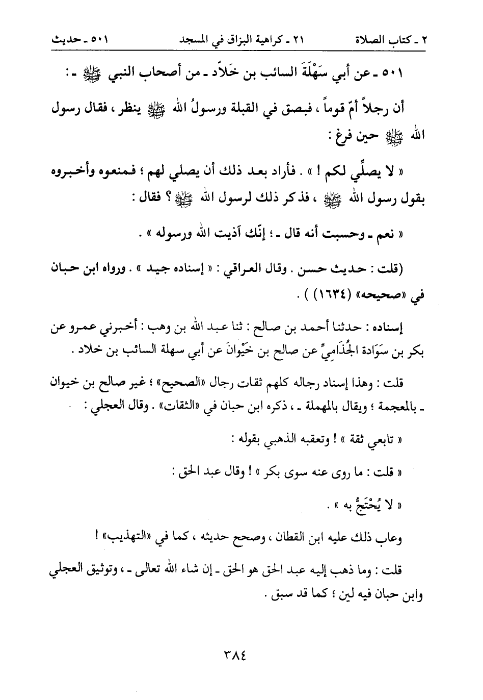 501- عن أبي سَهْلَةَ السائب بن خَلأد- من أصحاب النبي صَلَّى اللَّهُ عَلَيْهِ وَسَلَّمَ-: