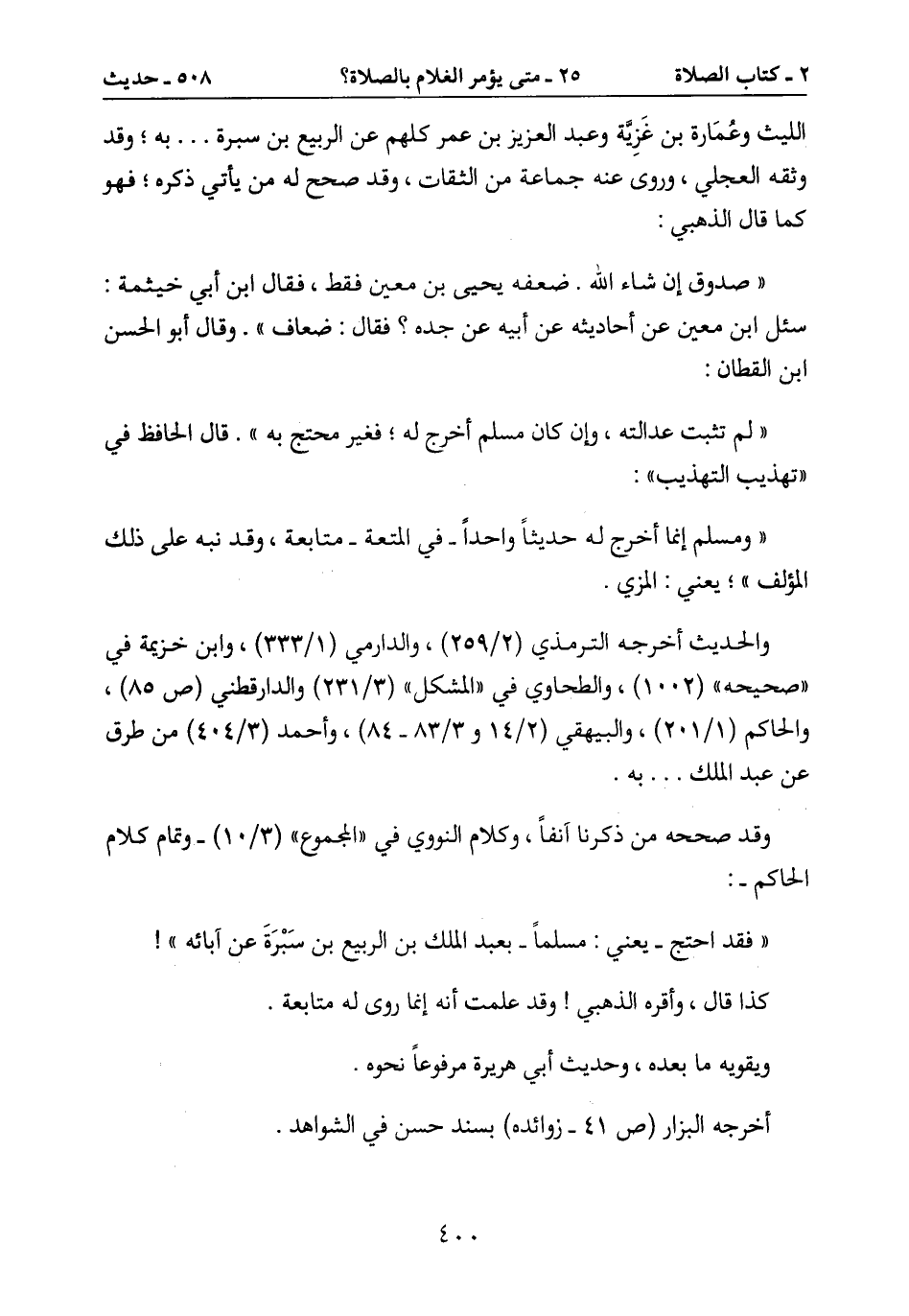 الليث وعُمَارة بن غَزِيَّة وعبد العزيز بن عمر كلهم عن الربيع بن سبرة ... به؛ وقد