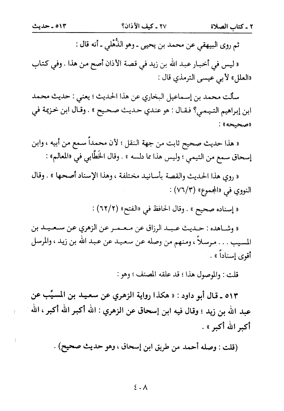 " ليس في أخبار عبد الله بن زيد في قصة الأذان أصح من هذا. وفي كتاب