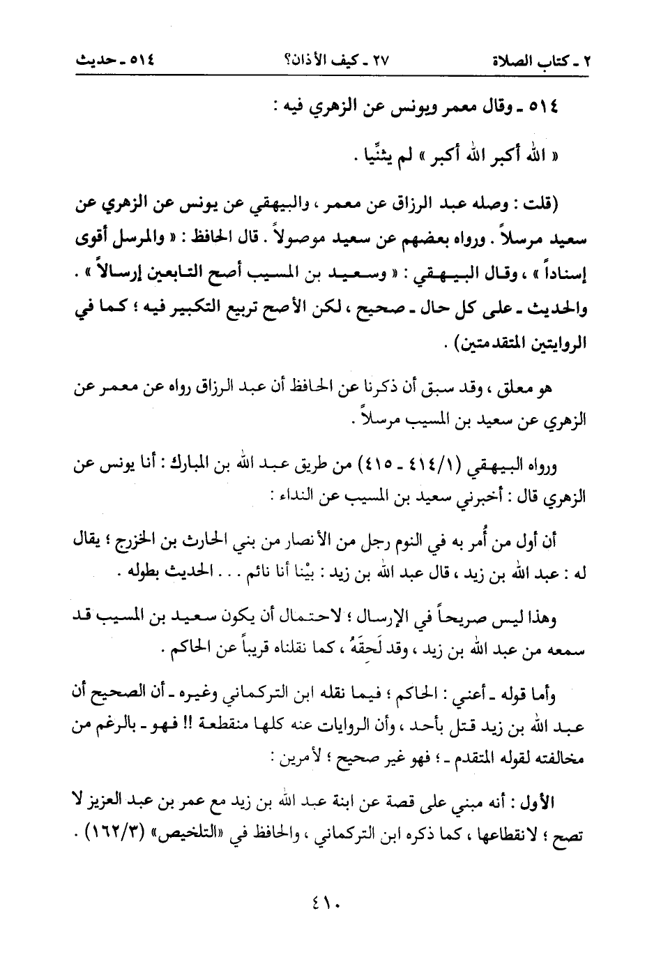 ورواه البيهقي (1/414- 415) من طريق عبد الله بن المبارك: أنا يونس عن