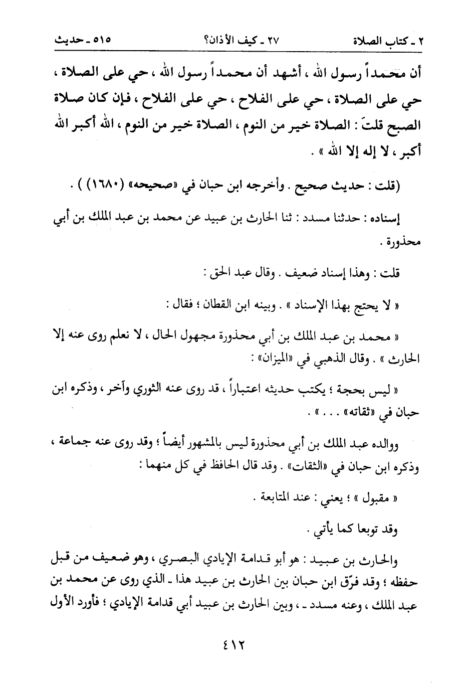 " محمد بن عبد اللك بن أبي محذورة مجهول الحال، لا نعلم روى عنه إلا