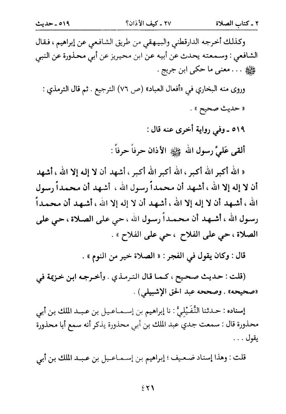وروى منه البخاري في "أفعال العباد" (ص 76) الترجيع. ثم قال الترمذي: