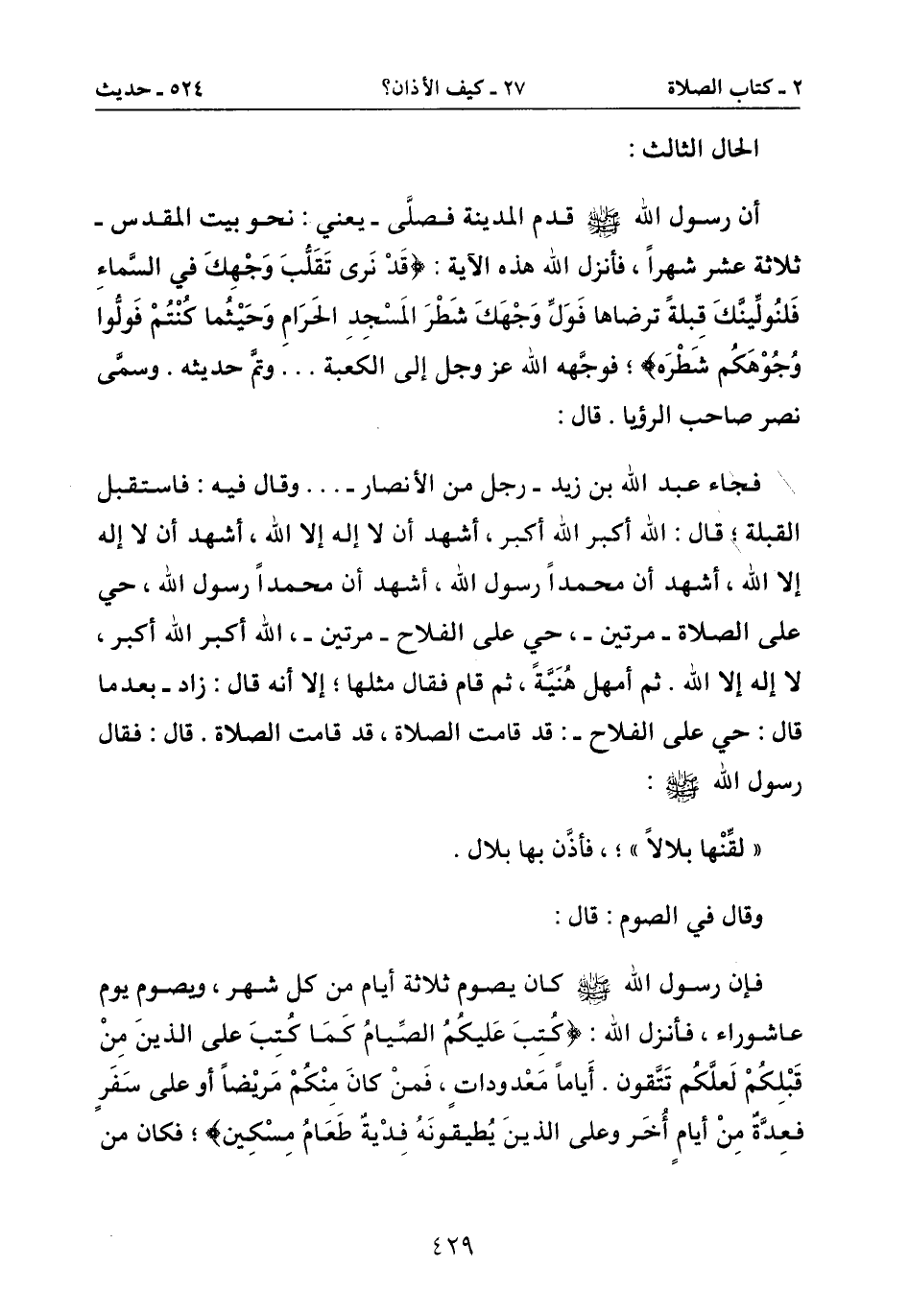 فجاء عبد الله بن زيد- رجل من الأنصار- ... وقال فيه: فاستقبل