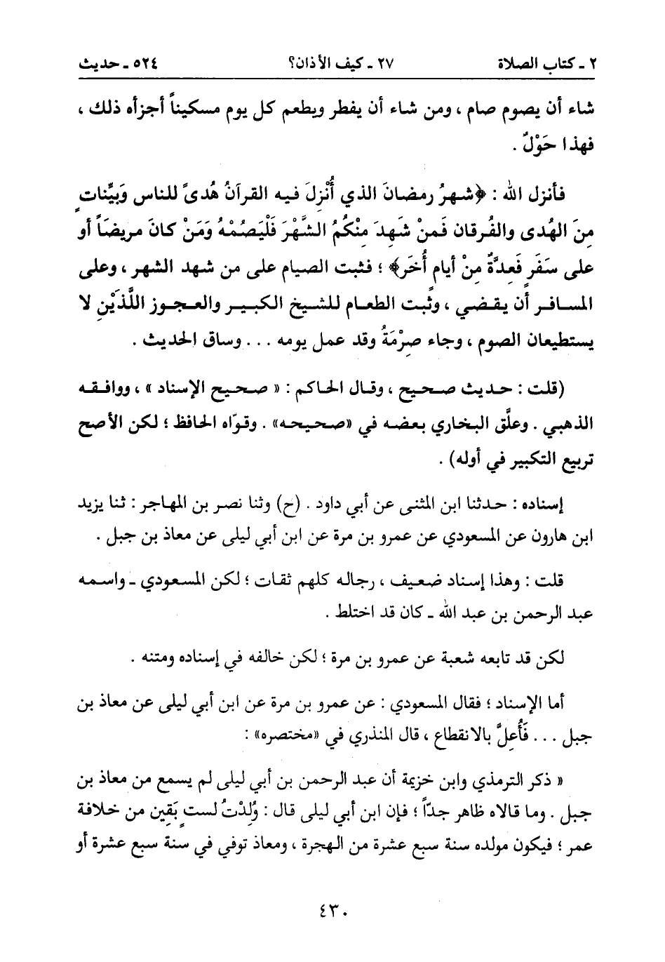 " ذكر الترمذي وابن خزيمة أن عبد الرحمن بن أبي ليلى لم يسمع من معاذ بن