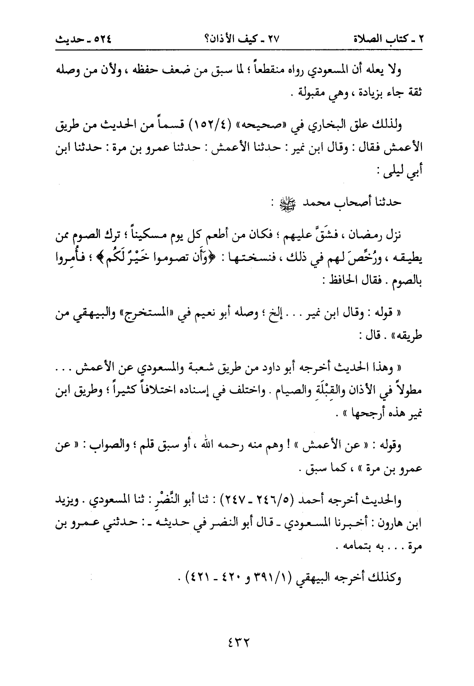 مطولاً في الأذان والقِبْلَةِ والصيام. واختلف في إسناده اختلافاً كثيراً؛ وطريق ابن
