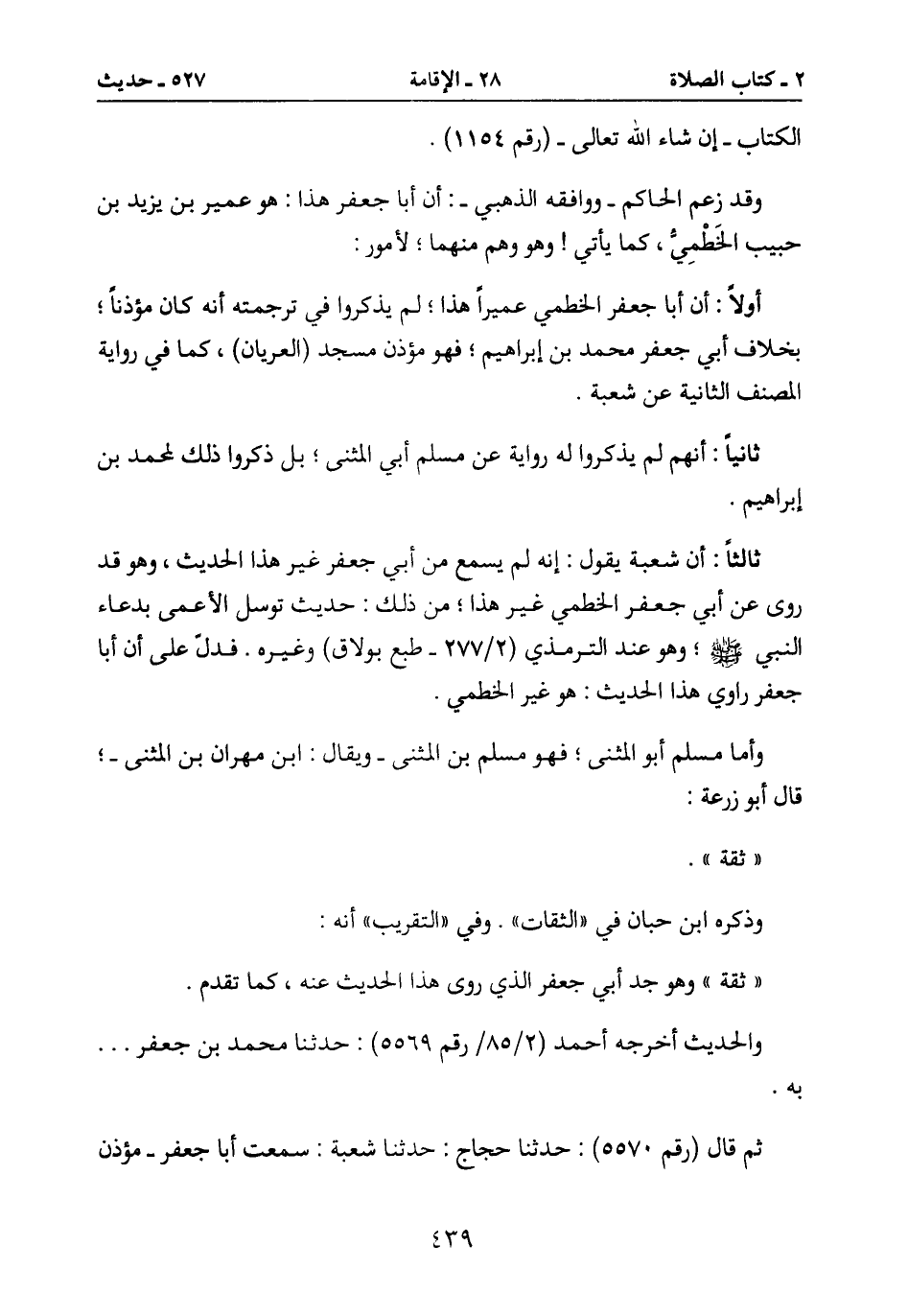 ثالثاً: أن شعبة يقول: إنه لم يسمع من أبي جعفر غير هذا الحديث، وهو قد