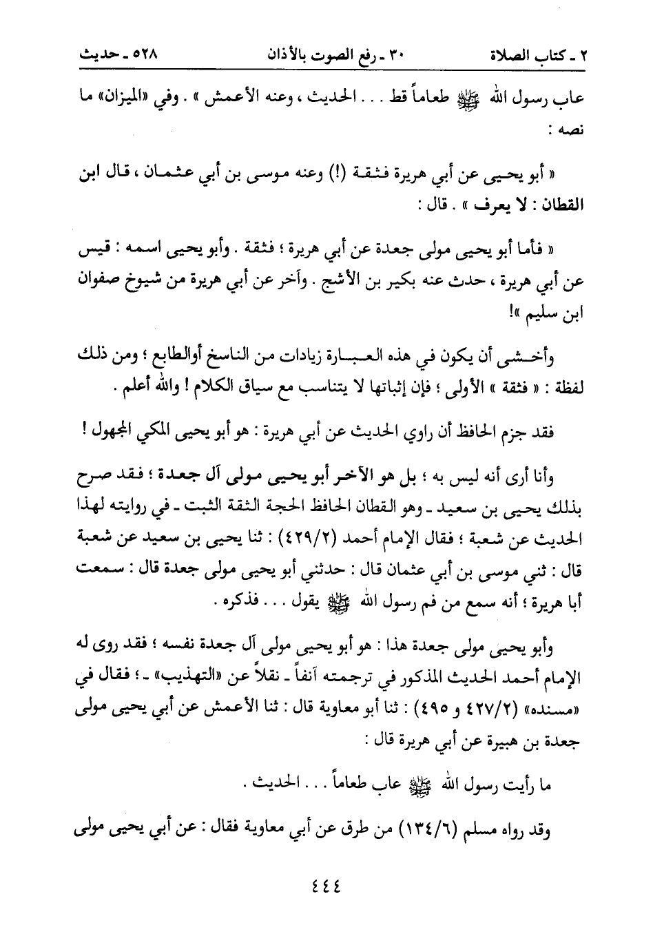 بذلك يحيى بن سعيد- وهو القطان الحافظ الحجة الثقة الثبت- في روايته لهذا