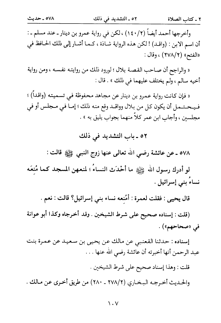 578- عن عائشة رضي الله تعالى عنها زوج النبي صَلَّى اللَّهُ عَلَيْهِ وَسَلَّمَ قالت: