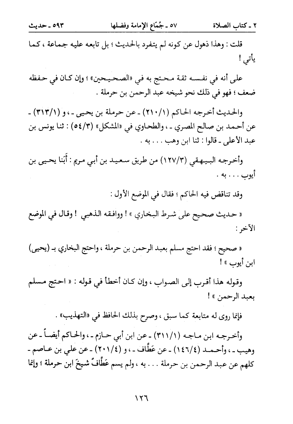 " صحيح؛ فقد احتج مسلم بعبد الرحمن بن حرملة، واحتج البخاري بـ (يحيى)
