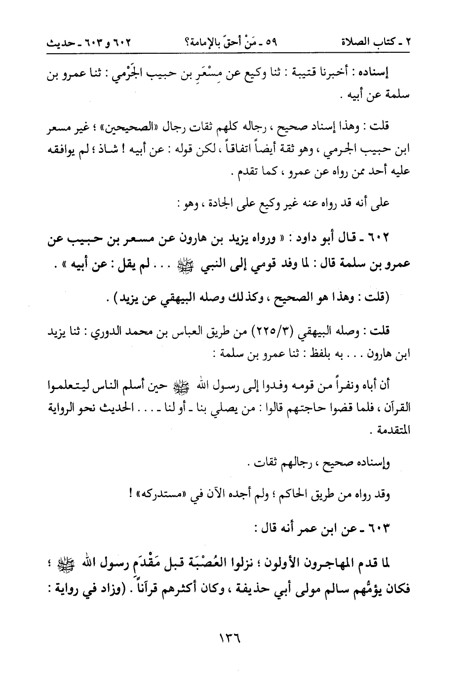 عمرو بن سلمة قال: لما وفد قومي إلى النبي صَلَّى اللَّهُ عَلَيْهِ وَسَلَّمَ ... لم يقل: عن أبيه ".
