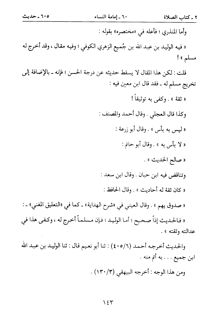 " فالحديث إذاً صحيح؛ أما الوليد، فإن مسلماً أخرج له، وكفى هذا في