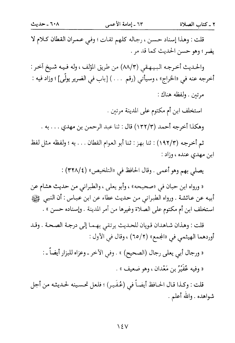 يصلي بهم وهو أعمى. وقال الحافظ في "التلخيص " (4/328) :