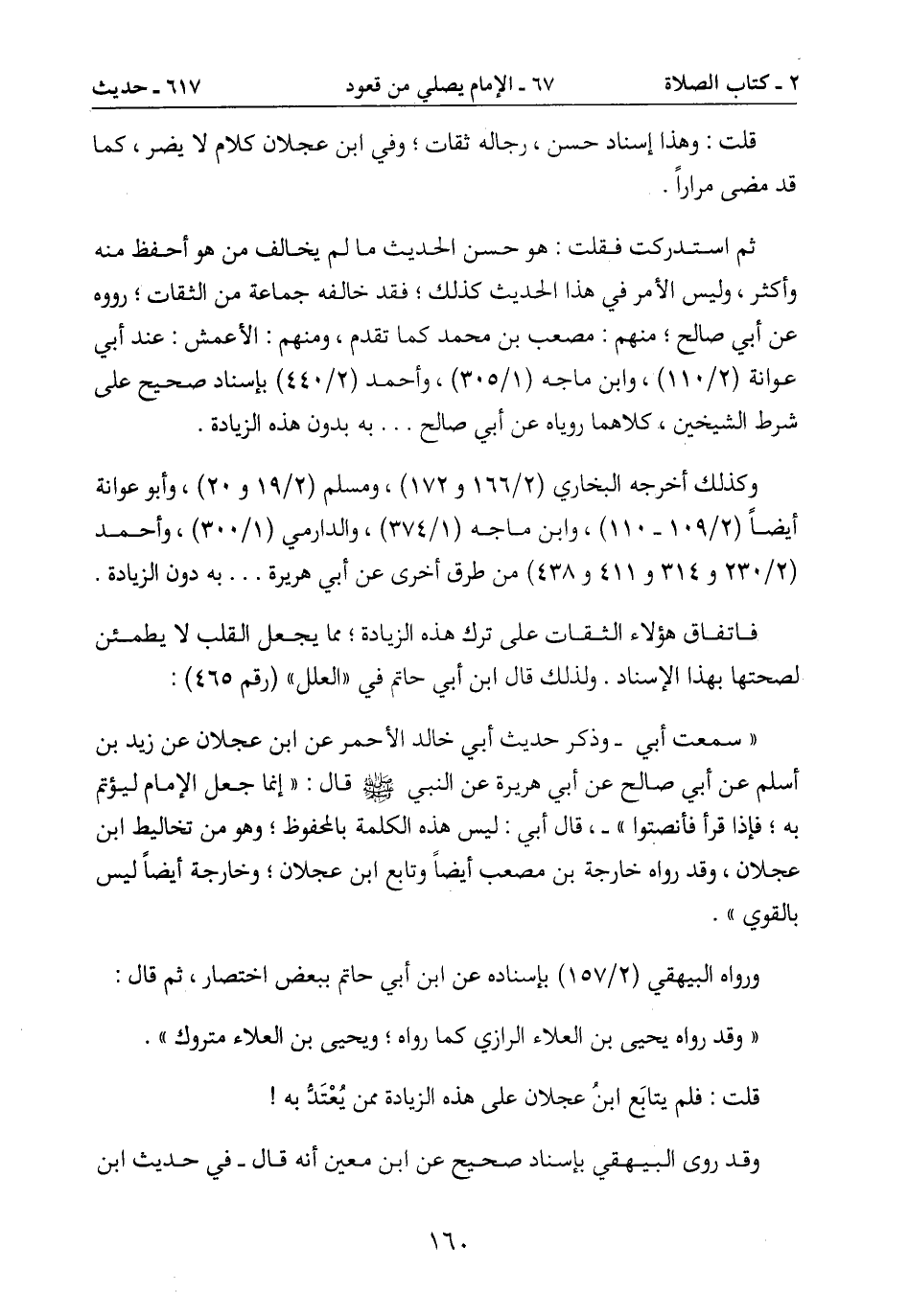 قلت: فلم يتابَع ابنُ عجلان على هذه الزيادة ممن يعْتَدّ به!