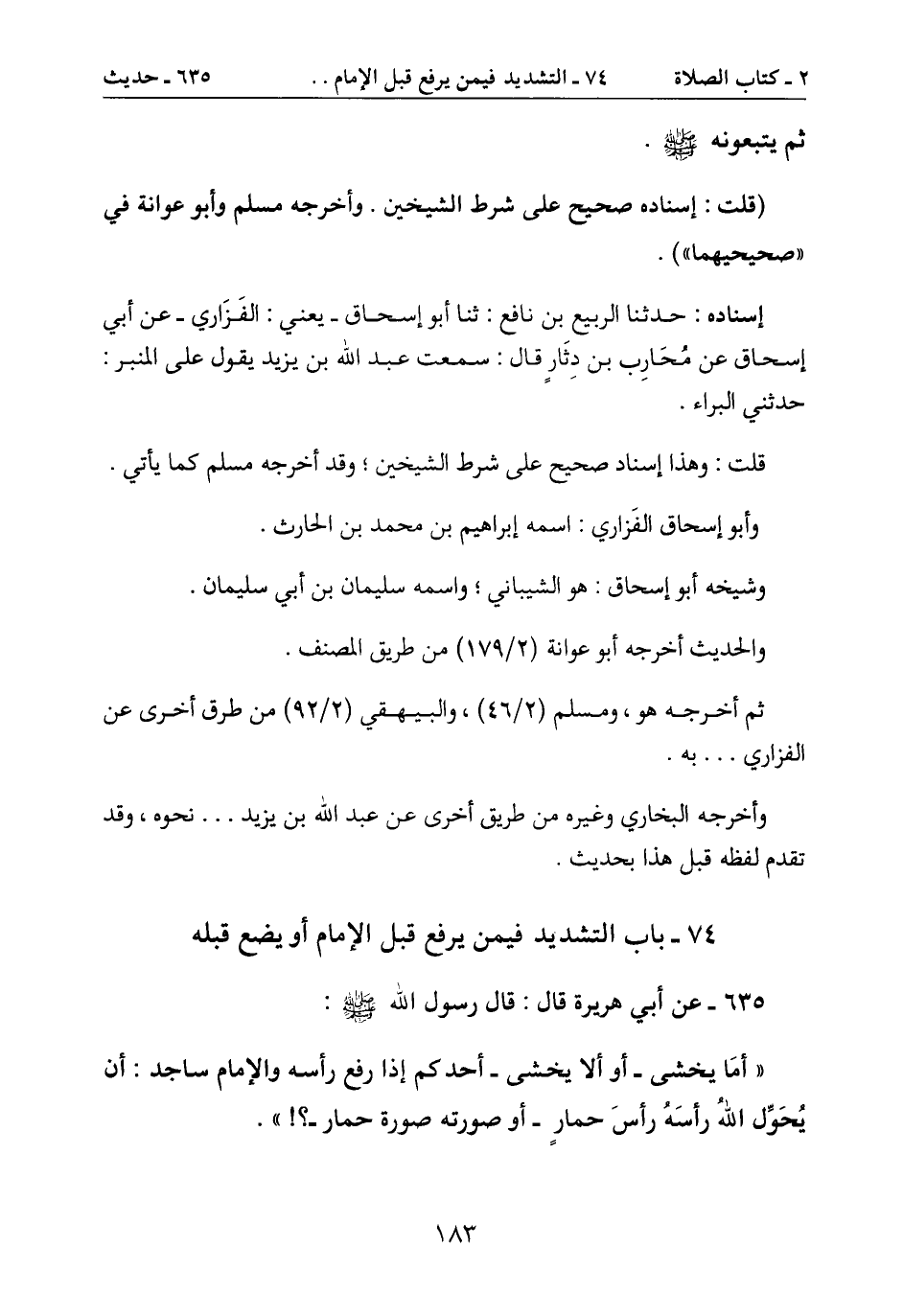 74- باب التشديد فيمن يرفع قبل الامام أو يضع قبله