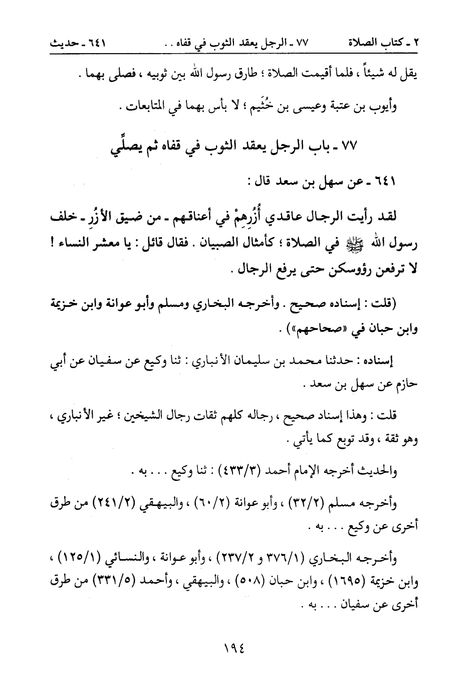 77- باب الرجل يعقد الثوب في قفاه ثم يصلي