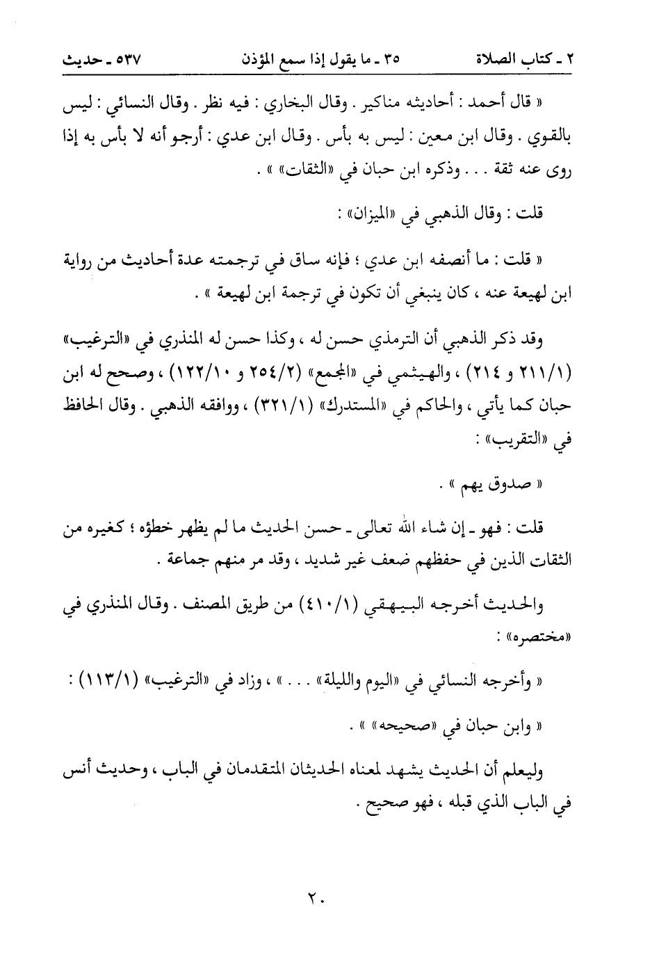 والحديث أخرجه البيهقي (1/410) من طريق المصنف. وقال المنذري في