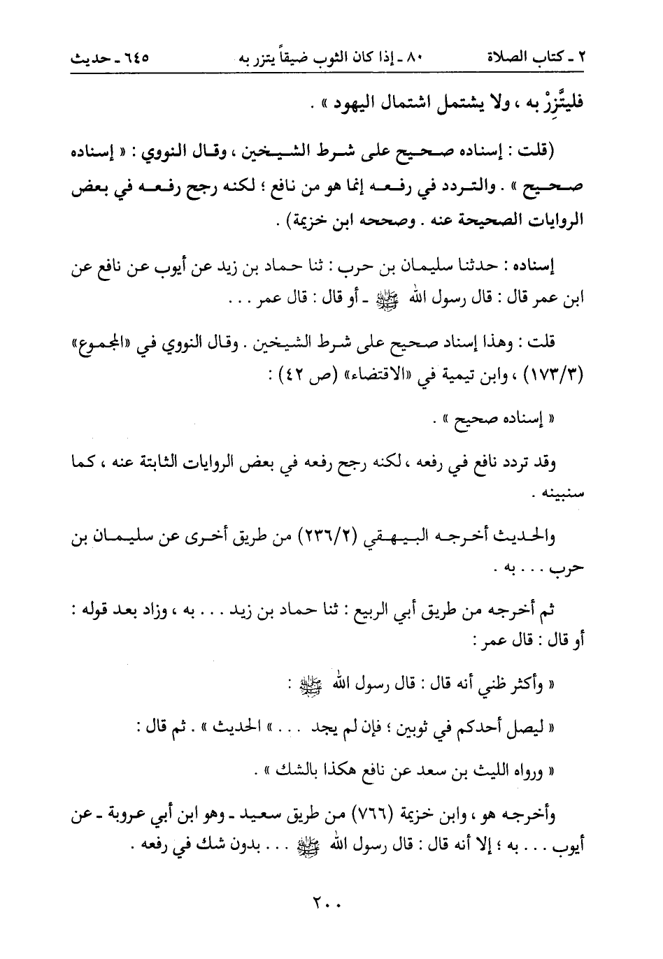 إسناده: حدثنا سليمان بن حرب: ثنا حماد بن زيد عن أيوب عن نافع عن
