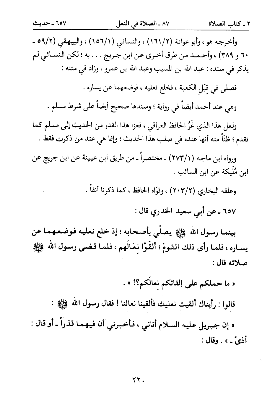 " ما حملكم على إلقائكم نِعالَكم؟ ا ".