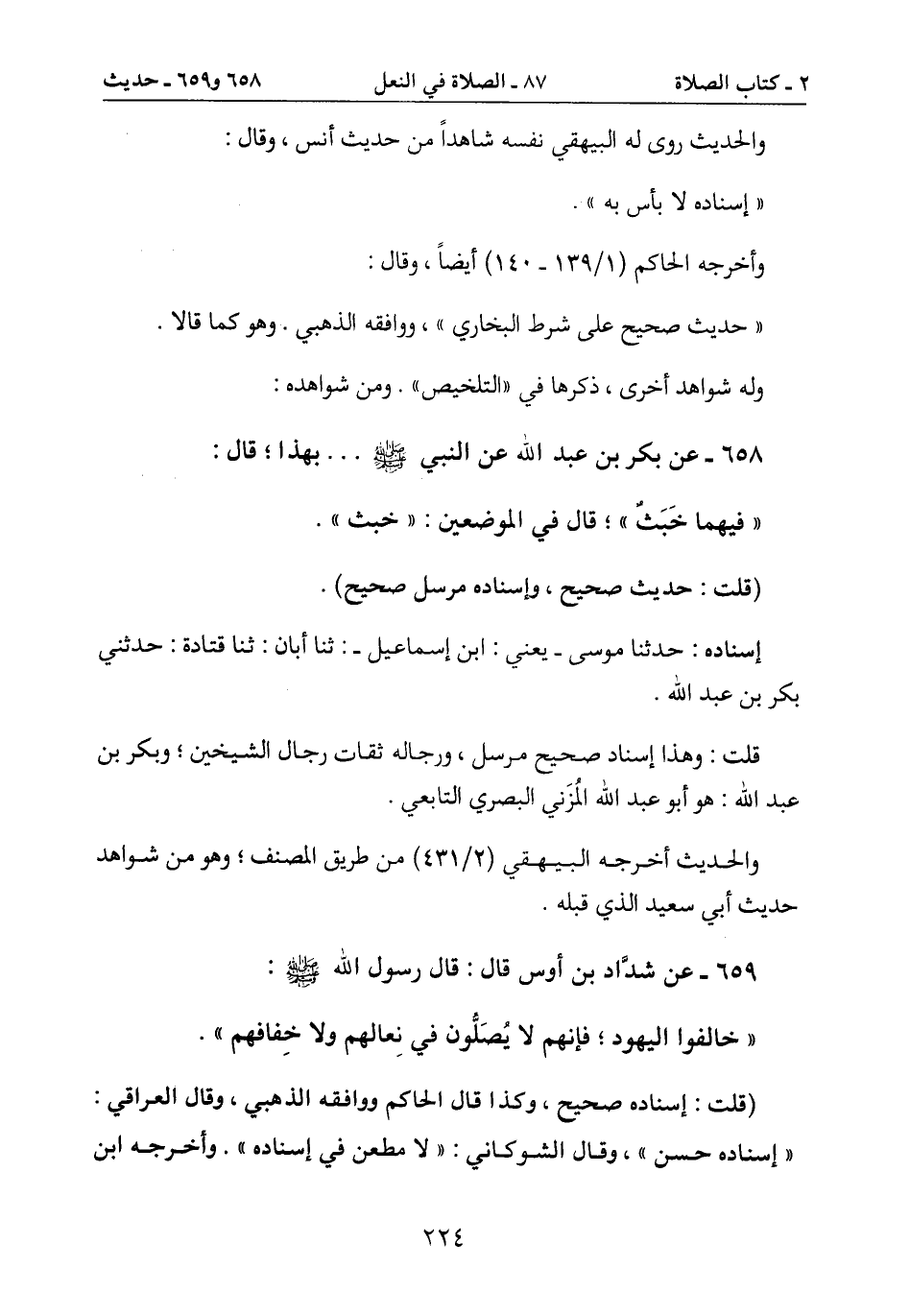 " خالفوا البهود؛ فإنهم لا يُصَلون في نِعالهم ولا خِفافهم ".