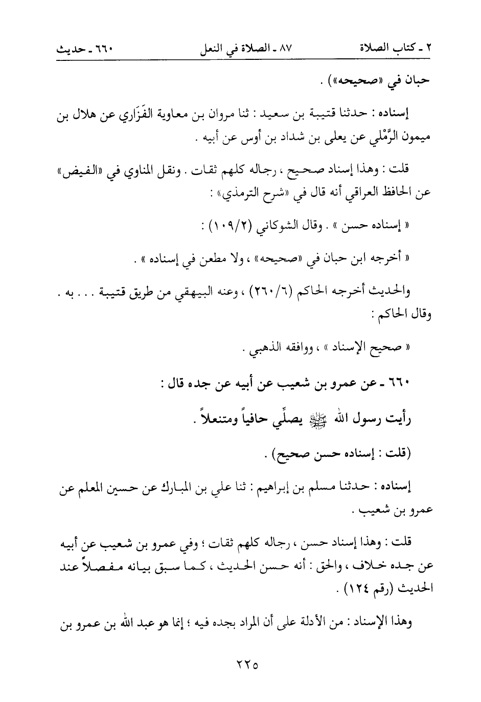 قلت: وهذا إسناد حسن، رجاله كلهم ثقات؛ وفي عمرو بن شعيب عن أبيه