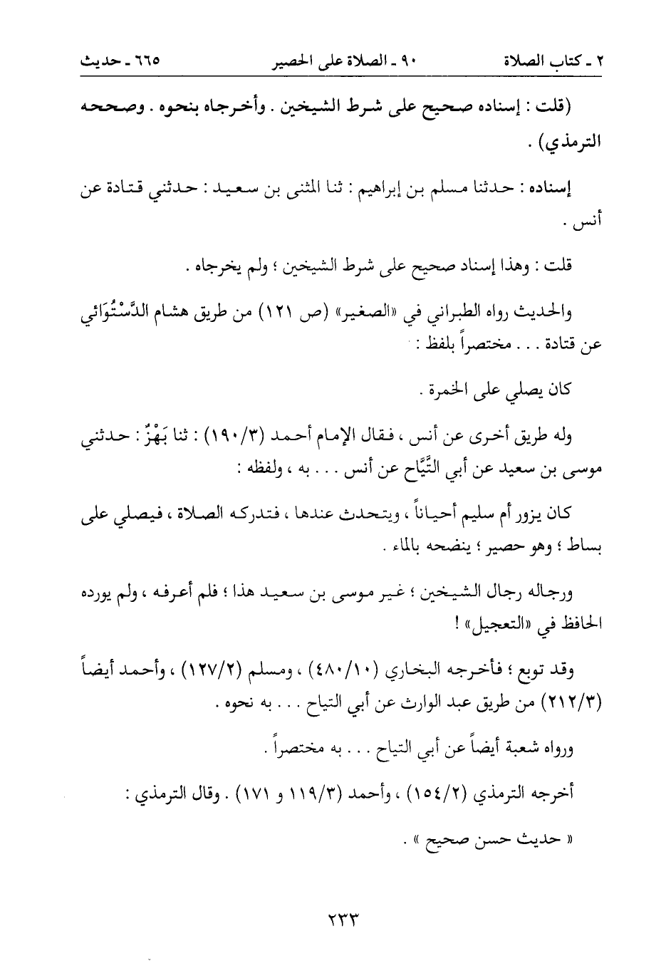 قلت: وهذا إسناد صحيح على شرط الشيخين؛ ولم يخرجاه.