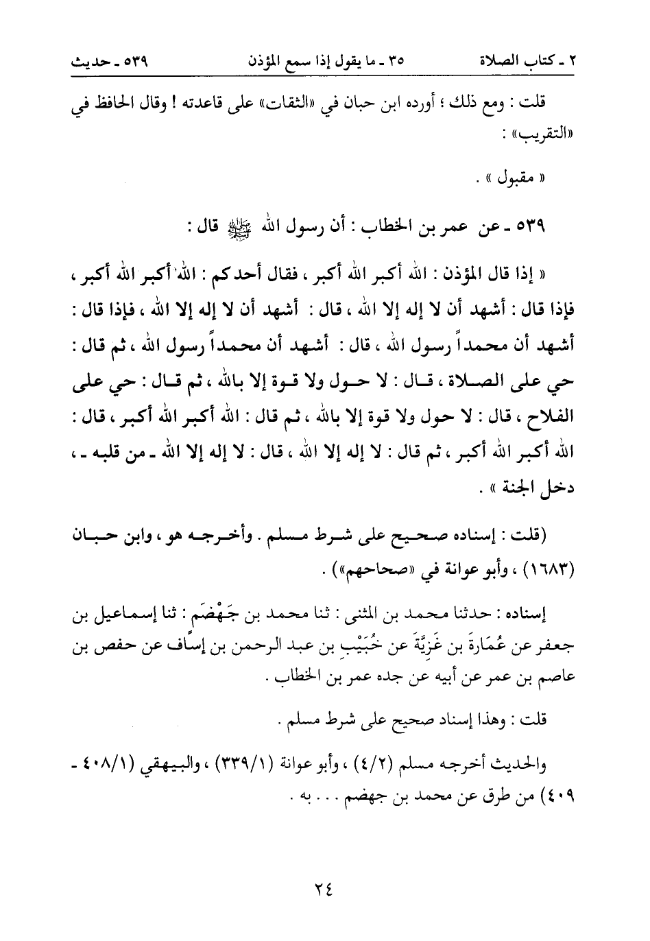 539- عن عمر بن الخطاب: أن رسول الله صَلَّى اللَّهُ عَلَيْهِ وَسَلَّمَ قال: