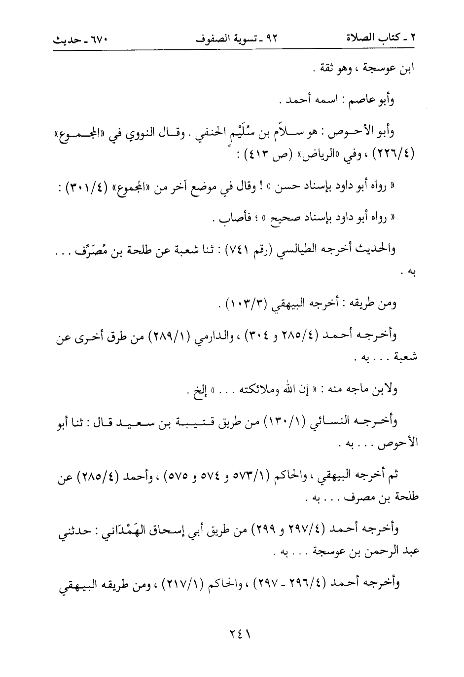 وأبو الأحوص: هو سملاّم بن سُلَيْم الحنفي. وقال النووي في "المجموع "