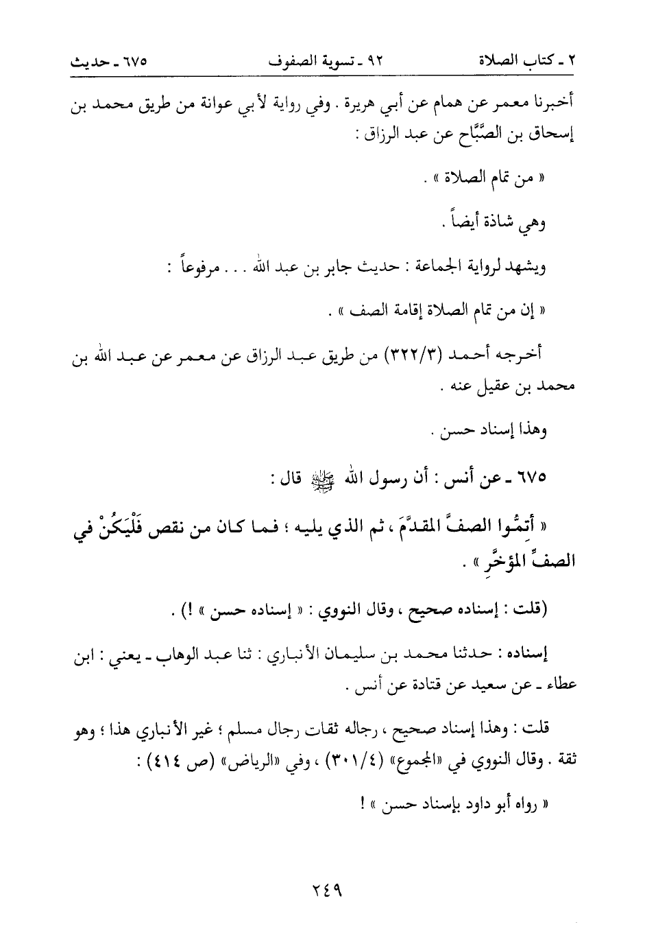675- عن أنس: أن رسول الله صَلَّى اللَّهُ عَلَيْهِ وَسَلَّمَ قال: