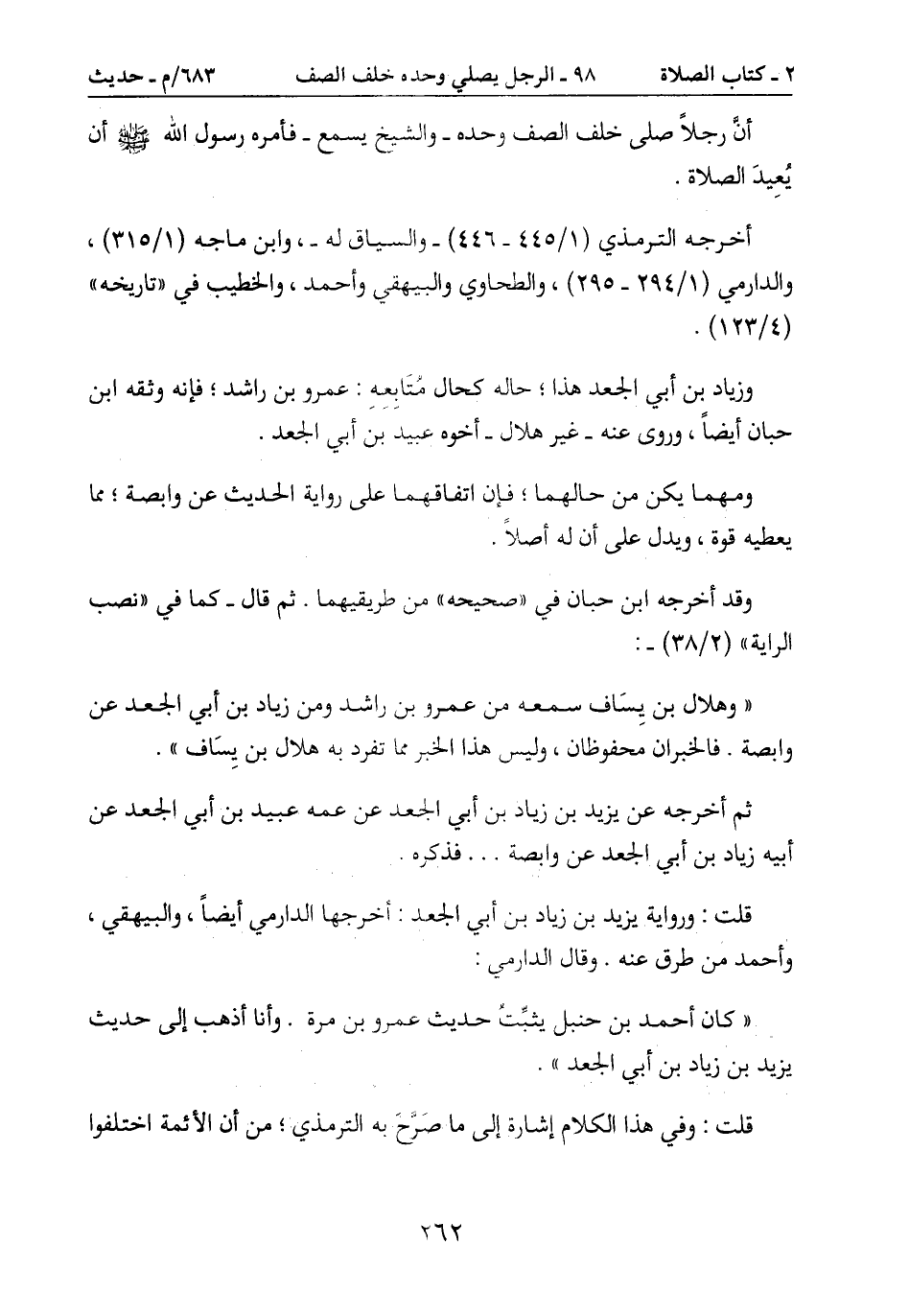 أنَّ رجلاً صلى خلف الصف وحده- والشيخ يسمع- فأمره رسول الله صَلَّى اللَّهُ عَلَيْهِ وَسَلَّمَ أن