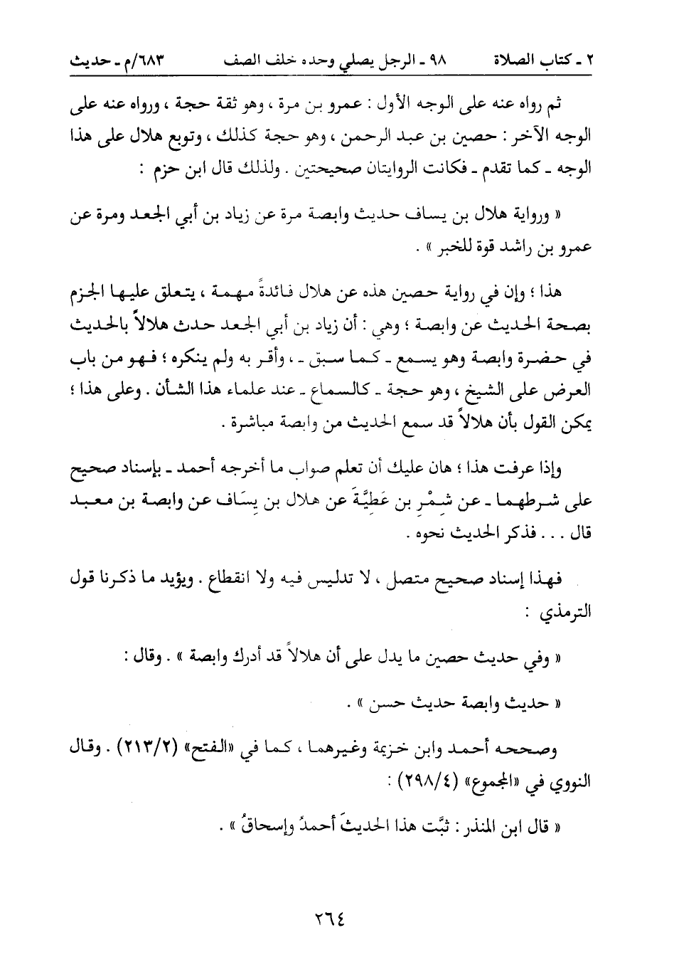 " وفي حديث حصين ما يدل على أن هلالاً قد أدرك وابصة ". وقال: