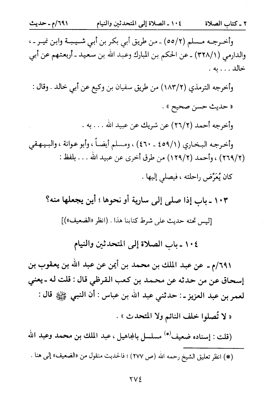 104- باب الصلاة إلى المتحدثين والنيام