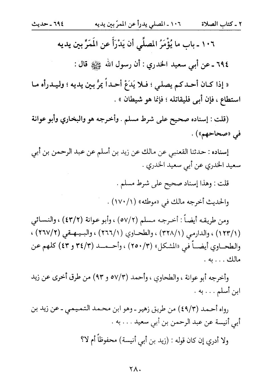 106- باب ما يؤْمر المصلِّي أن يَدْرأ عن المَمَرِّ بين يديه