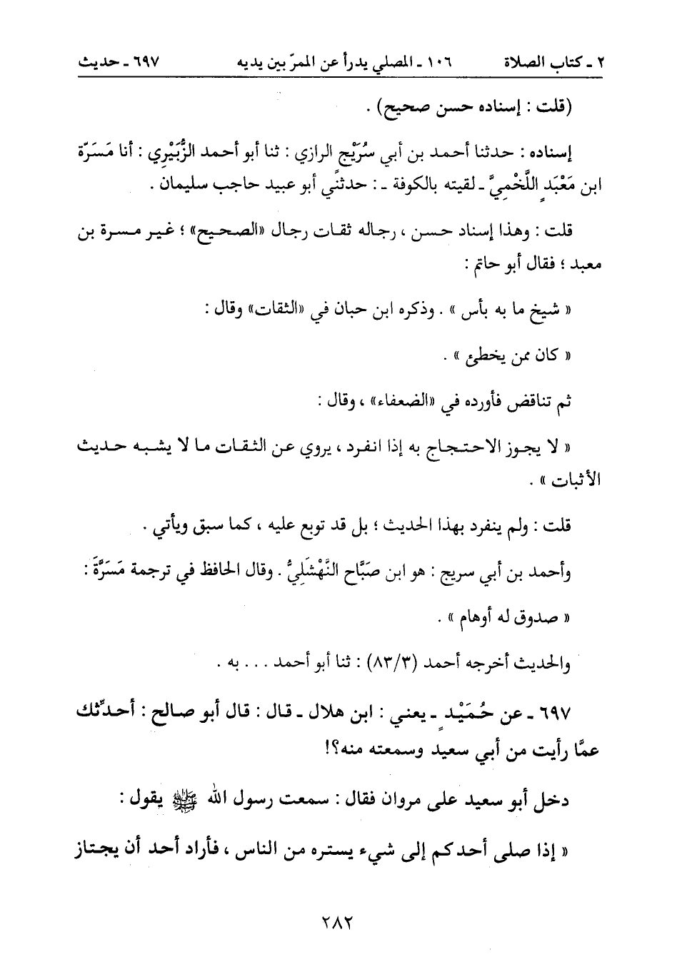 " إذا صلى أحدكم إلى شيء يستره من الناس، فأراد احد أن يجتاز