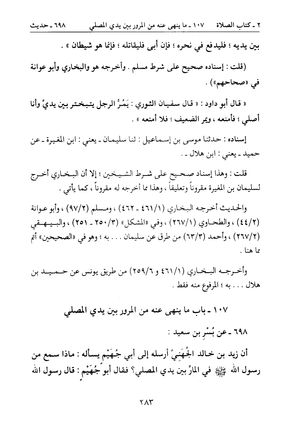 107- باب ما ينهى عنه من المرور بين يدي المصلي
