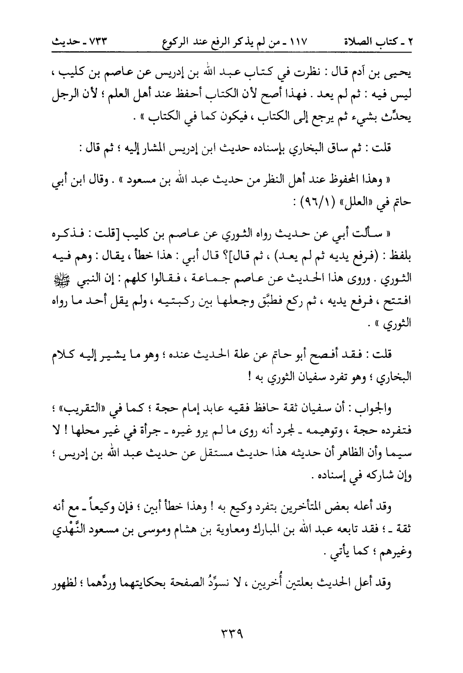 بلفظ: (فرفع يديه ثم لم يعد) ، ثم قال أ؟ قال أبي: هذا خطأ، يقال: وهم فيه