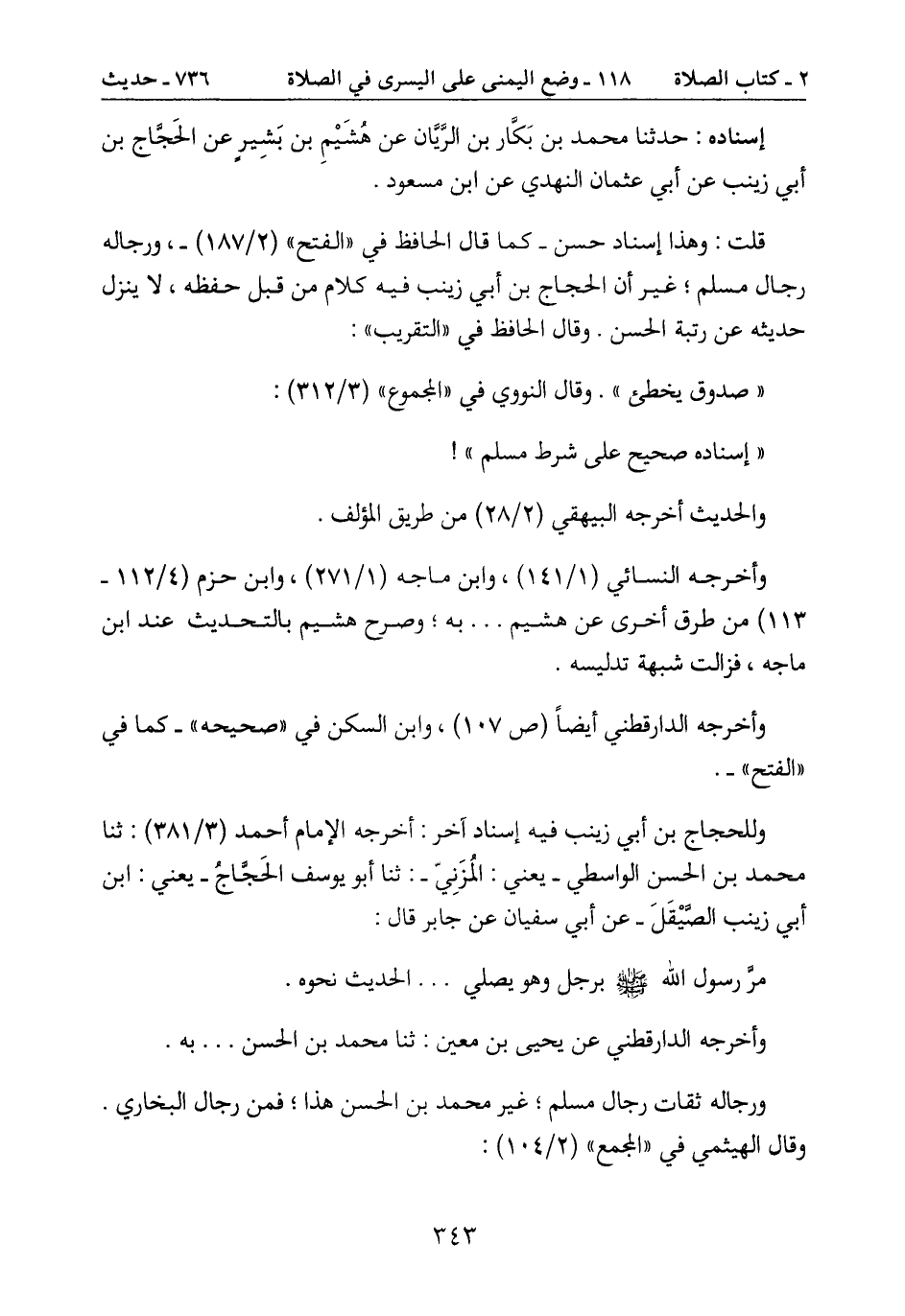 إسناده: حدثنا محمد بن بَكَّار بن الرَئان عن هشَيْمِ بن بَشِيرٍ عن الحَجاج بن