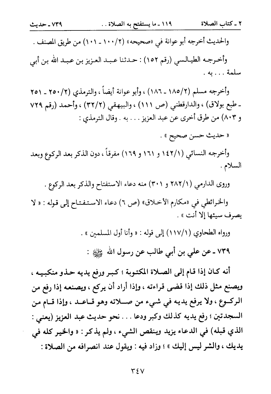 والخرائطي في "مكارم الأخلاق " (ص 6) دعاء الاستفتاح إلى قوله: " لا
