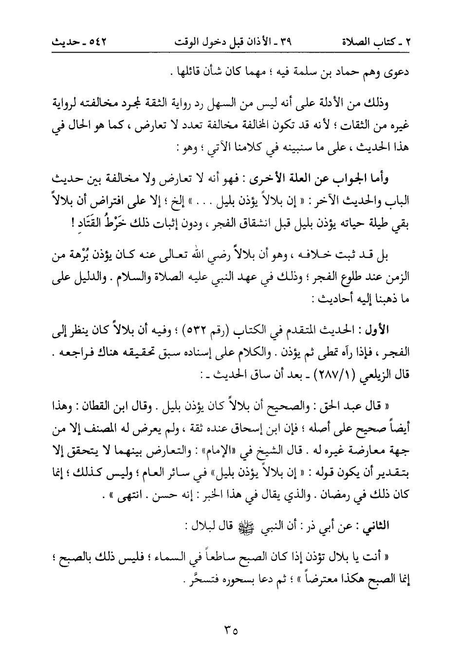 الأول: الحديث المتقدم في الكتاب (رقم 532) ؛ وفيه أن بلالاً كان ينظر إلى