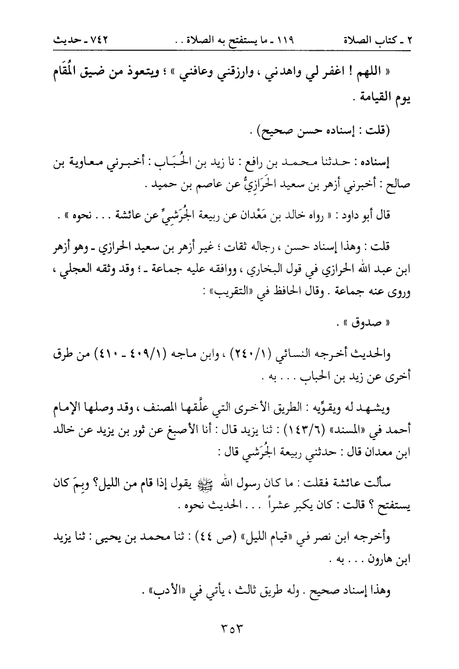والحديث أخرجه النسائي (1/240) ، وابن ماجه (1/409- 410) من طرق