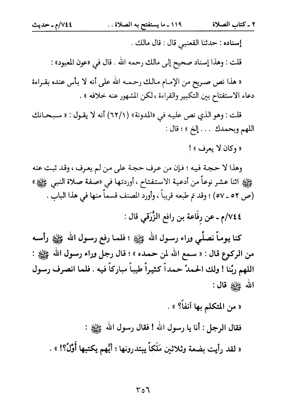 744/م- عن رِفَاعة بن رافع الزرَقي قال: