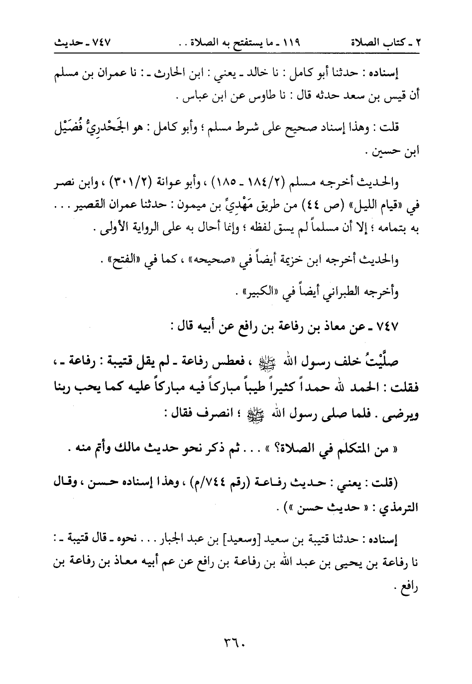 (قلت: يعني: حديث رفاعة (رقم 744/م) ، وهذ اإسناده حسن، وقال