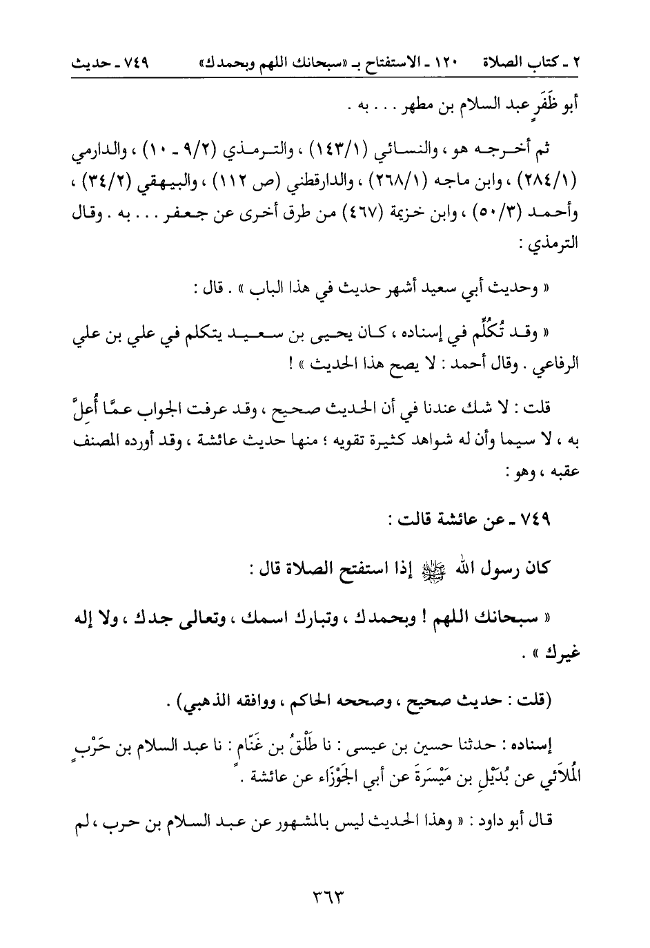 قال أبو داود: " وهذا الحديث ليس بالمشهور عن عبد السلام بن حرب، لم