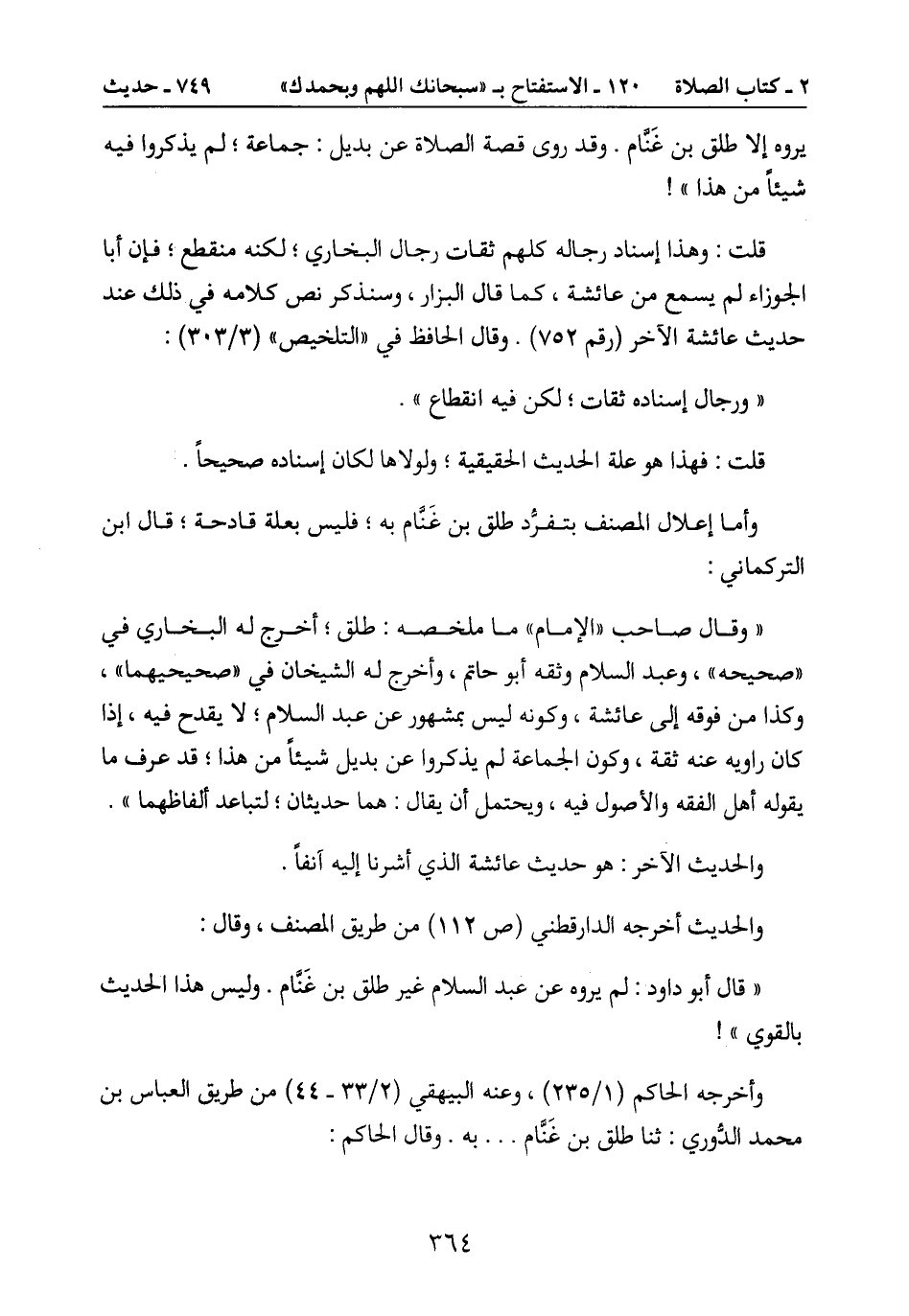وأما إعلال المصنف بتفرد طلق بن غَنَّام به؛ فليس بعلة قادحة؛ قال ابن