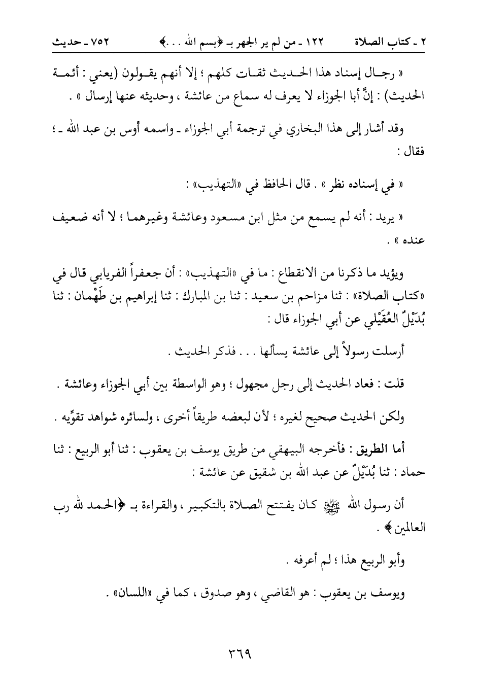 قلت: فعاد الحديث إلى رجل مجهول؛ وهو الواسطة بين أبي الجوزاء وعائشة.