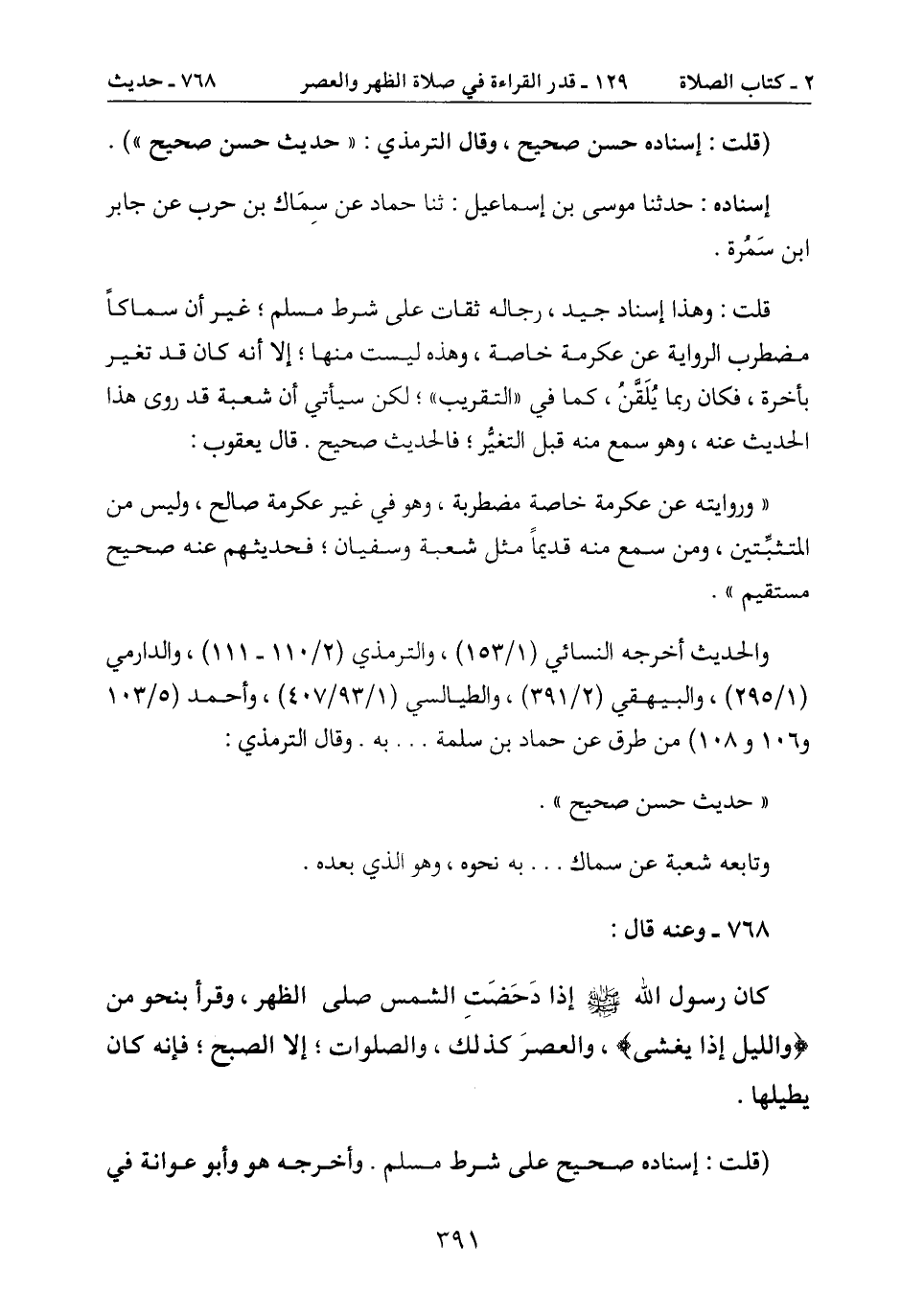 قلت: وهذا إسناد جيد، رجاله ثقات على شرط مسلم؛ غير أن سماكاً