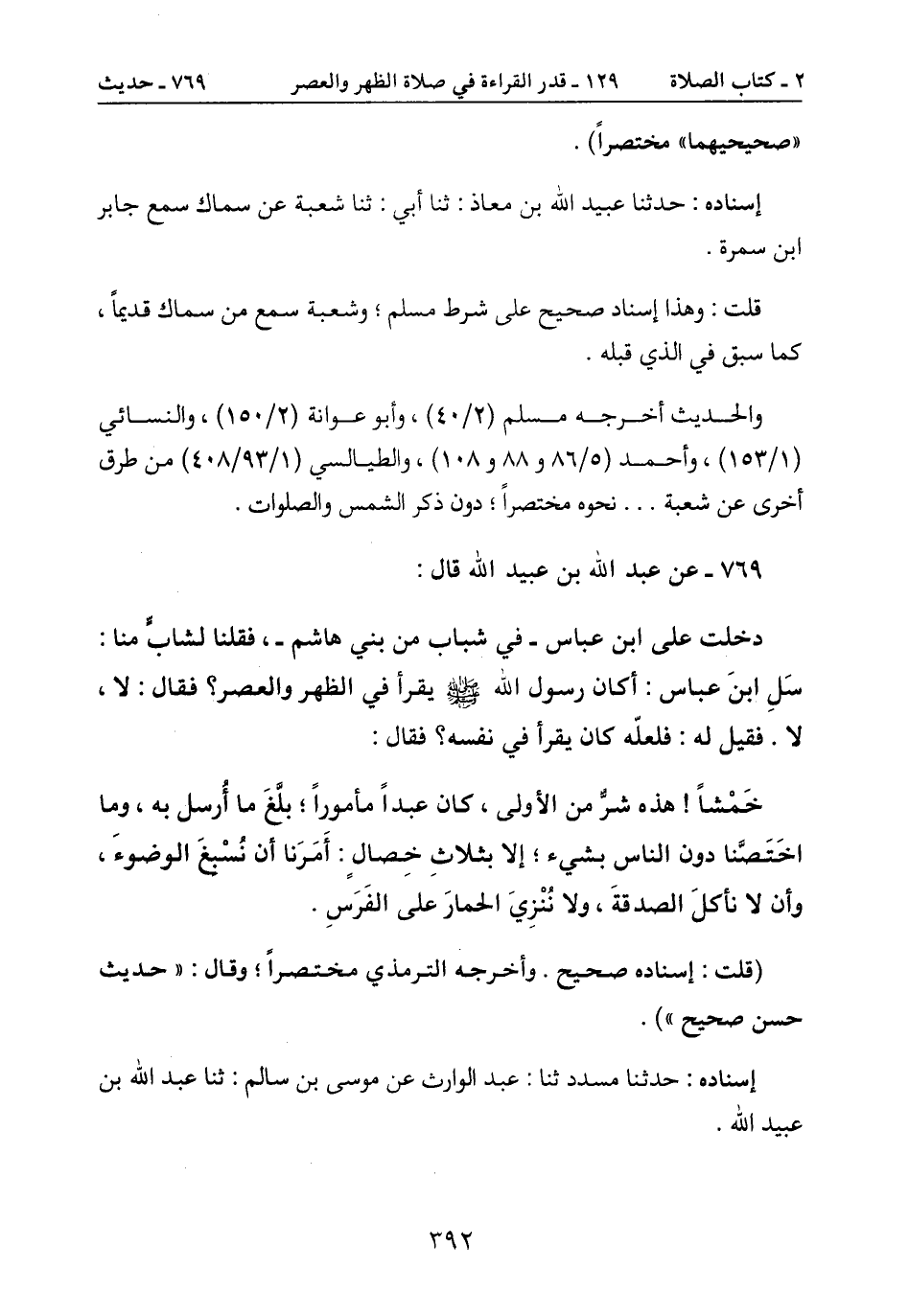 سَلِ ابنَ عباس: أكان رسول الله صَلَّى اللَّهُ عَلَيْهِ وَسَلَّمَ يقرأ في الظهر والعصر؟ فقال: لا،