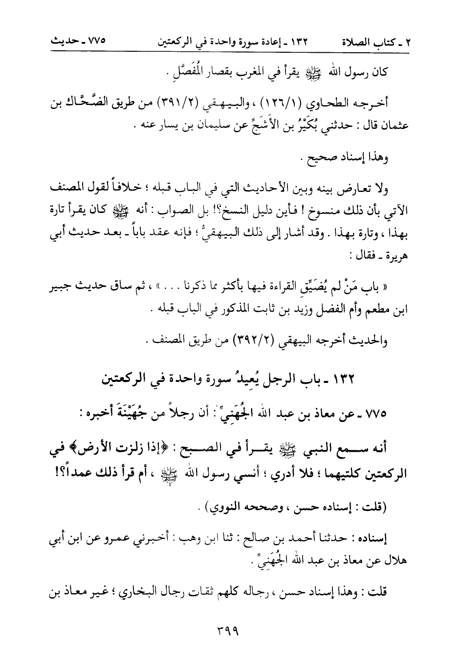 132- باب الرجل يُعِيدُ سورة واحدة في الركعتين